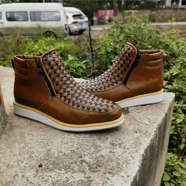 MEN'S CASUAL BRAIDED SIDE ZIPPER COWBOY BOOTS 81373144S