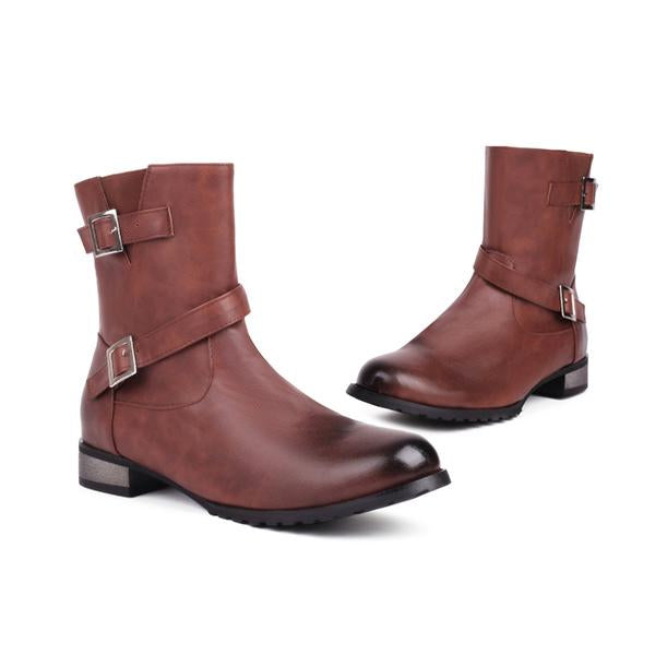 MEN'S CASUAL RETRO BUCKLE LEATHER BOOTS 45577631YL