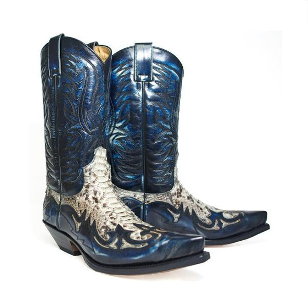 MEN'S EMBROIDERED SNAKE PRINT BLOCK HEEL WESTERN BOOTS 26509052S