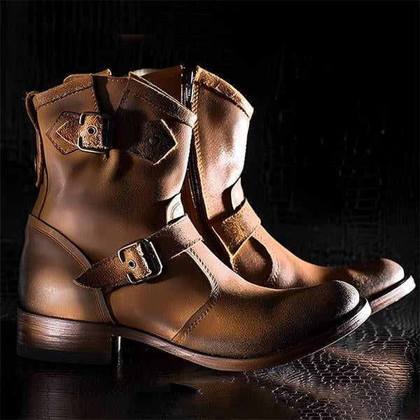MEN'S RETRO BUCKLE LEATHER BOOTS 58372334YL