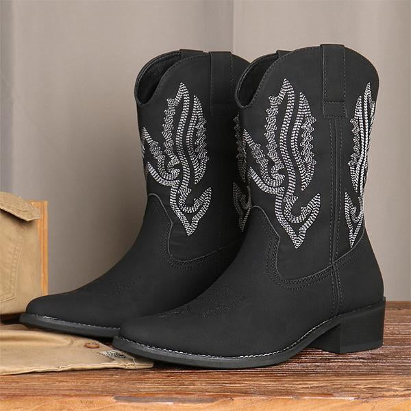MEN'S RETRO CONTRASTING EMBROIDERY DESIGN WESTERN BOOTS 76234851YL