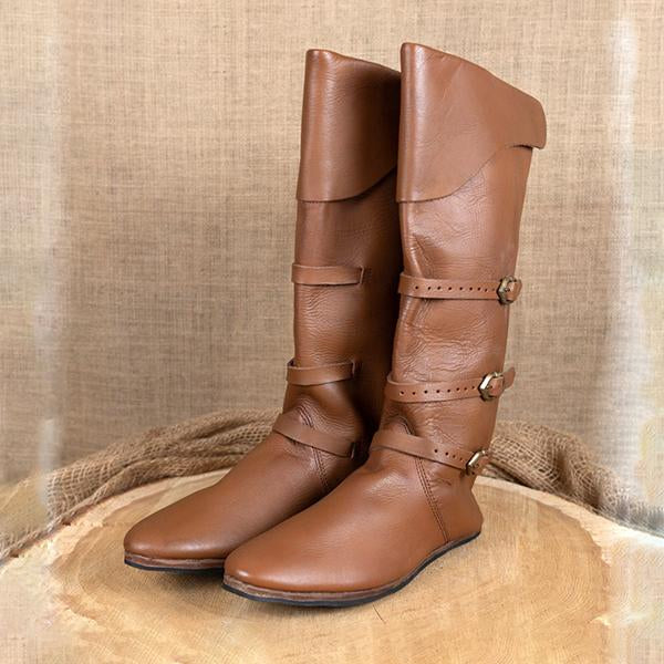 MEN'S RETRO MEDIEVAL FLAT BUCKLE BOOTS 82089783S