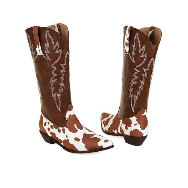 MEN'S RETRO THICK HEEL POINTED EMBROIDERED BOOTS 01152660YL