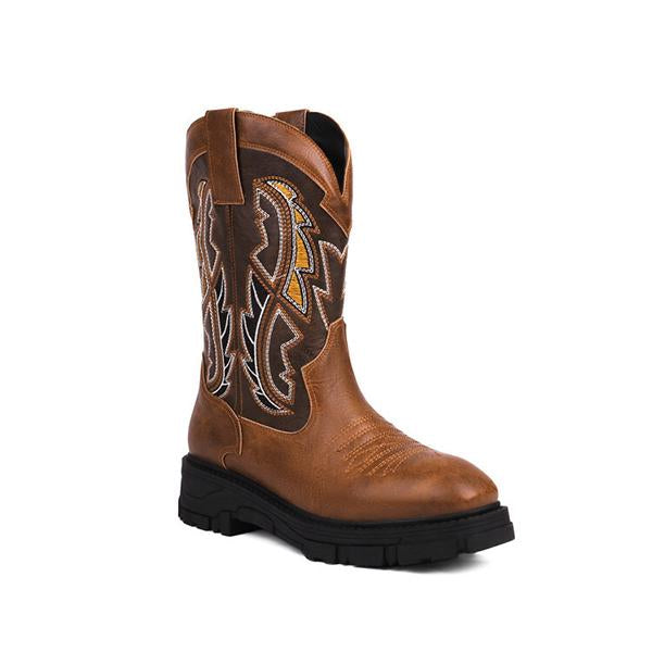 MEN'S ROUND TOE EMBROIDERED RETRO BOOTS 99333081YL