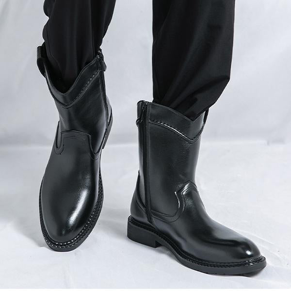 MEN'S ROUND TOE SOLID COLOR RETRO SIDE ZIPPER BOOTS 27338413YL