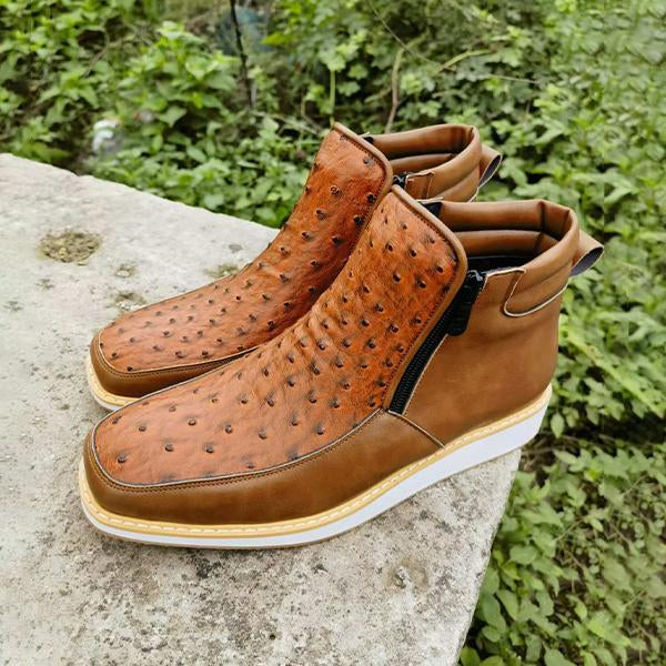 MEN'S SQUARE TOE SIDE ZIPPER OSTRICH PATTERN CASUAL BOOTS 83361864S