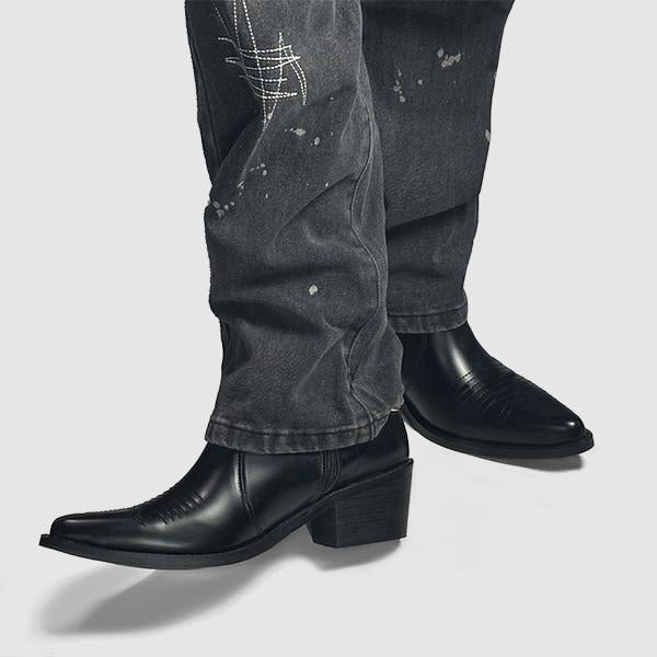 MEN'S STYLISH POINTED TOE SIDE ZIPPER WESTERN CHELSEA BOOTS 06458352S