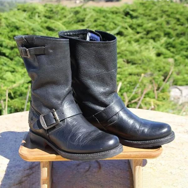 MEN'S VINTAGE BELT BUCKLE FLAT MID-CALF BOOTS 32025311S